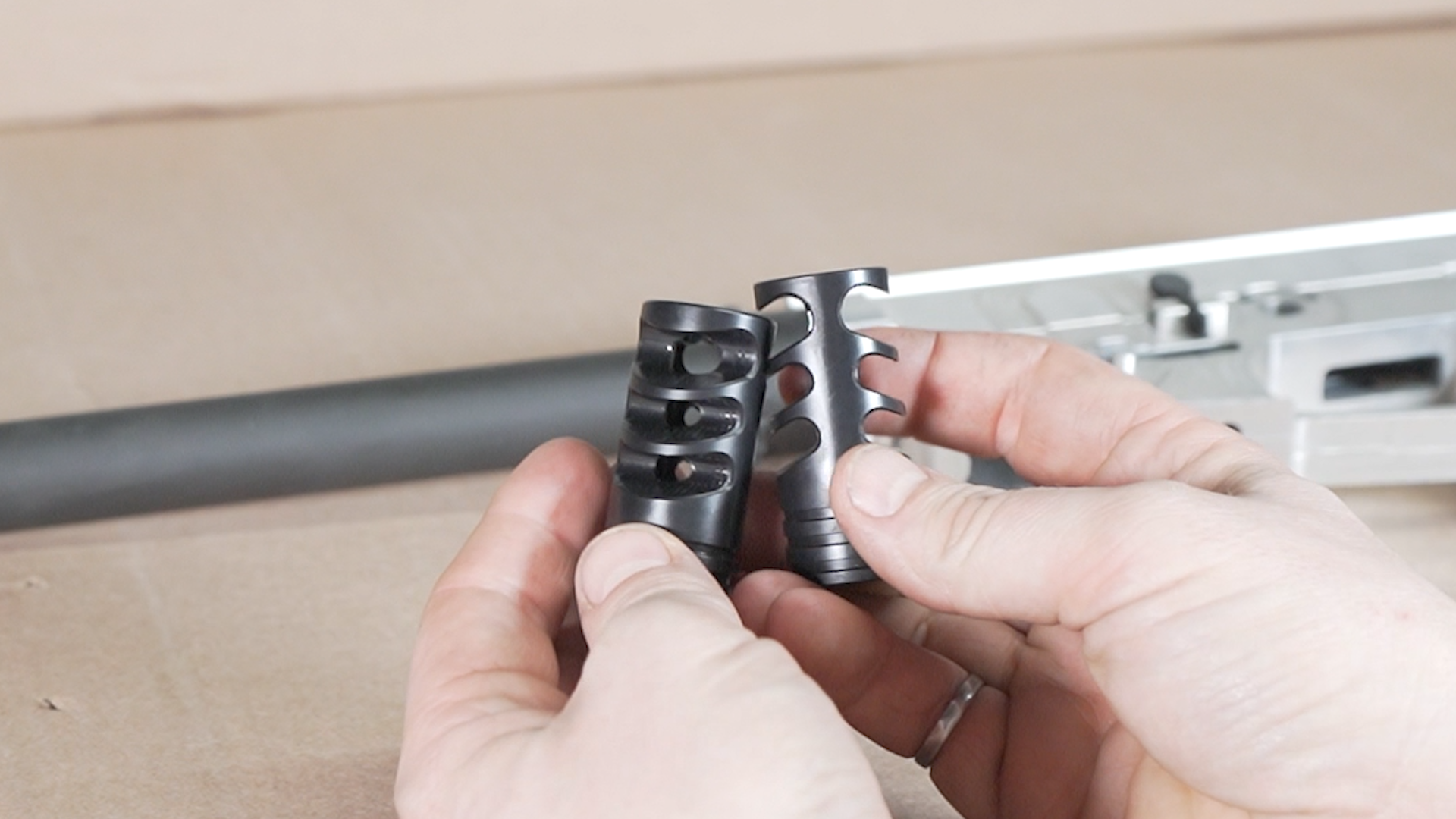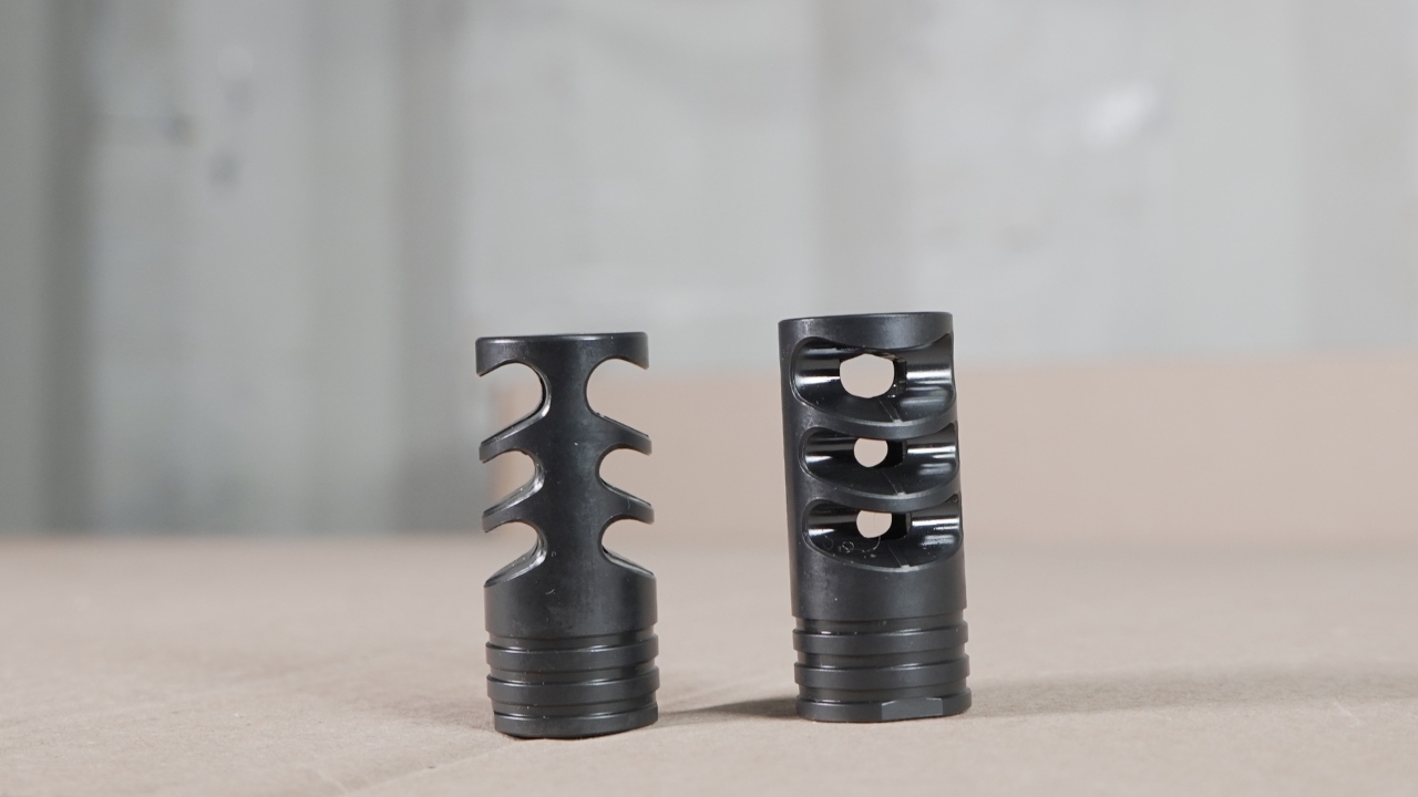 To install, the muzzle device must be timed—meaning it needs to be tightened until the ports are oriented correctly. This is accomplished by using one or more crush washers, which compress as the brake is tightened.